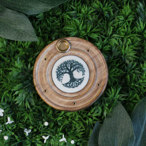 Wooden Incense Burner Green Tree Of Life 10 cm
